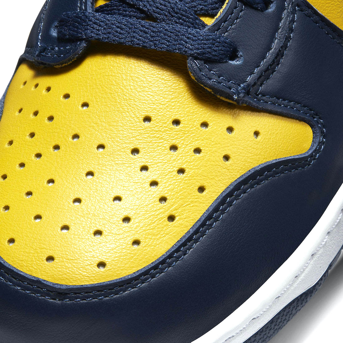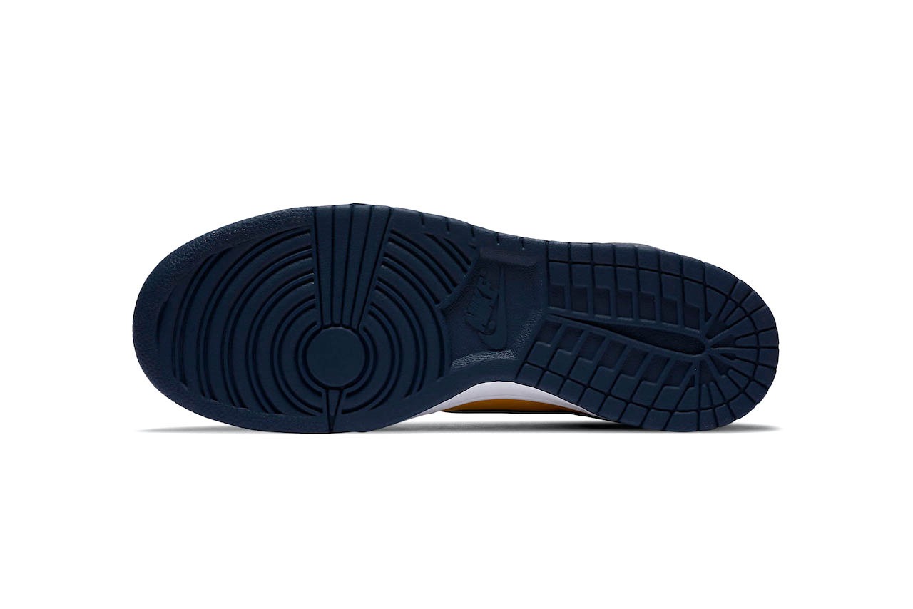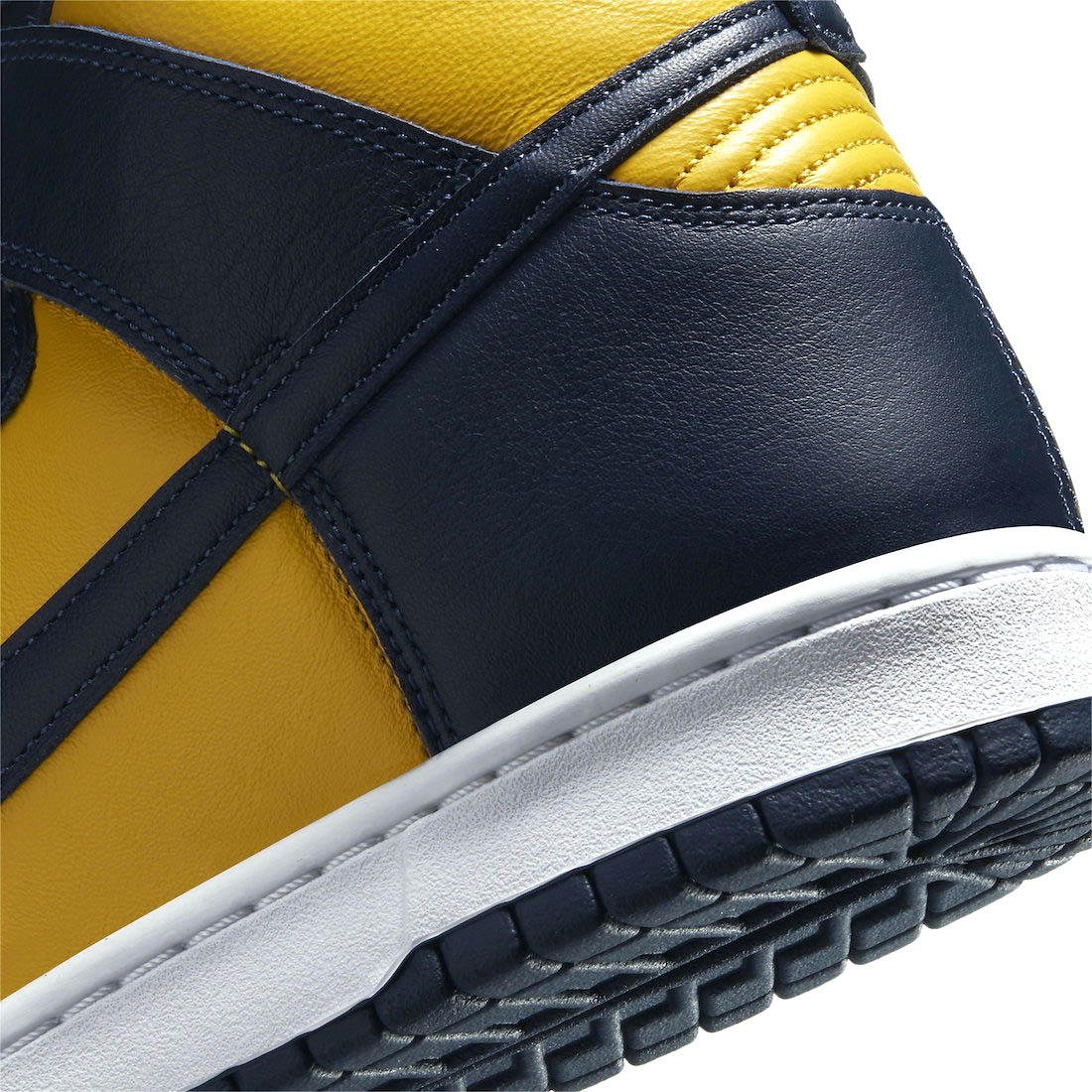 The unexpect resurgence of the Nike Dunk came shortly after Virgil Abloh released the coveted Off-White™ collection of Nike Dunk Low’s. With that collaboration, we saw the low iteration of this sneaker. Well, the hype continues, but this time for the Nike Dunk High. We recently covered the “Pro Green” colorway set to release September 18. This time Nike re-introduces one of its most popular colorways for any sneaker with the Nike Dunk High “Michigan”. This will be the second Nike Dunk High to release in 2020.