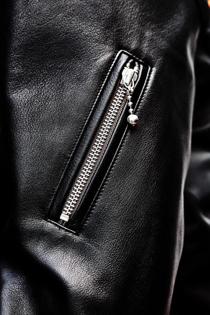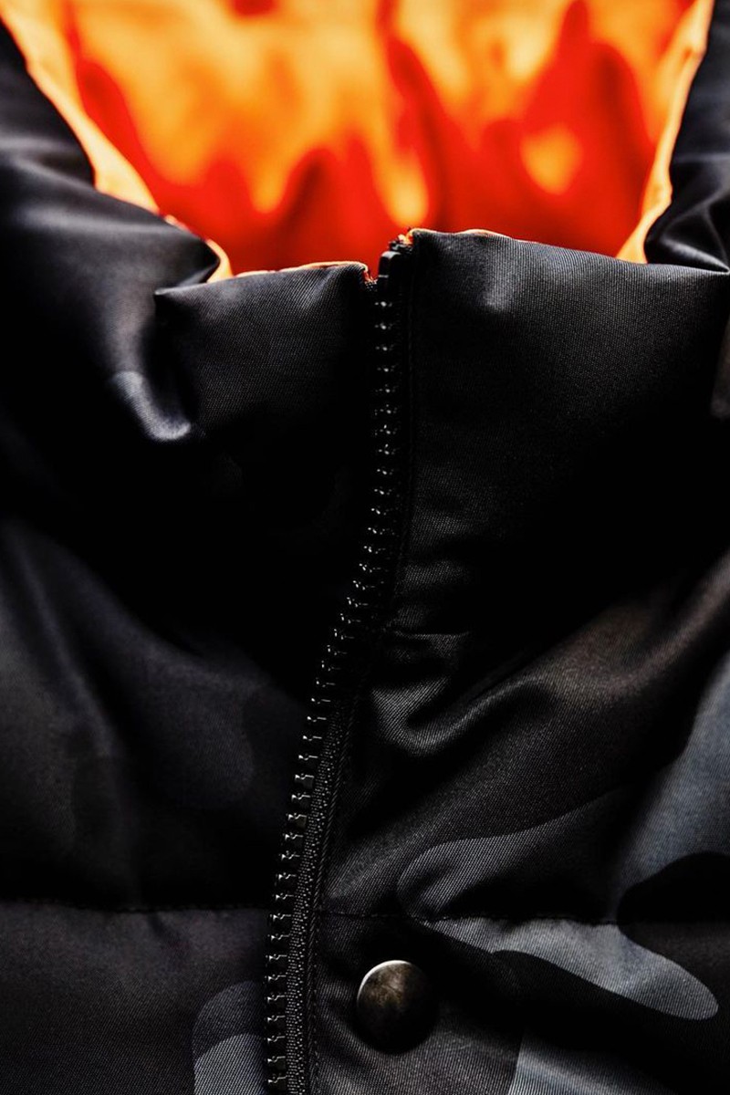 The jacket showcases the individuality of UNDERCOVER as they fuse essential material with technical fabrics. Such as we see on the jacket, with its down styled body with leather sleeves inspired by a traditional biker jacket. Valentino’s signature blue camo sits on the nylon exterior while the black sleeves feature UNDERCOVER details such as the custom zippers. They round off the jacket with UNDERCOVER x Valentino branding placed on the back.