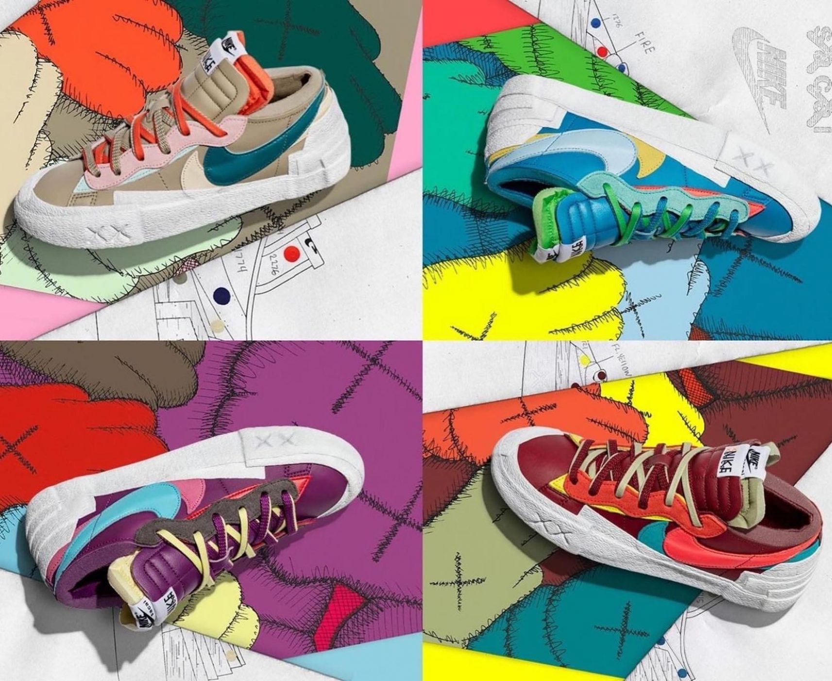 First revealed back in March, the three-way collaboration featuring Kaws, sacai, and Nike finally has a release date for their Blazer Lows. The sneakers feature four distinct colorways, including “Neptune Blue,” “Team Red,” “Purple Dusk,” and, most recently, “Reed.”