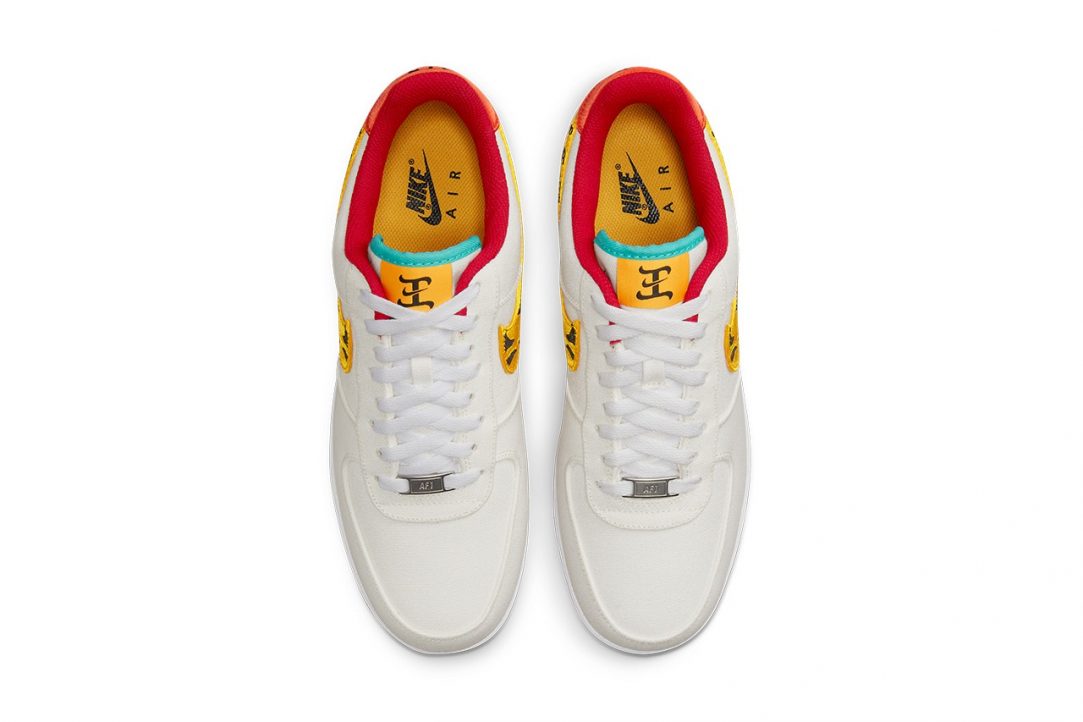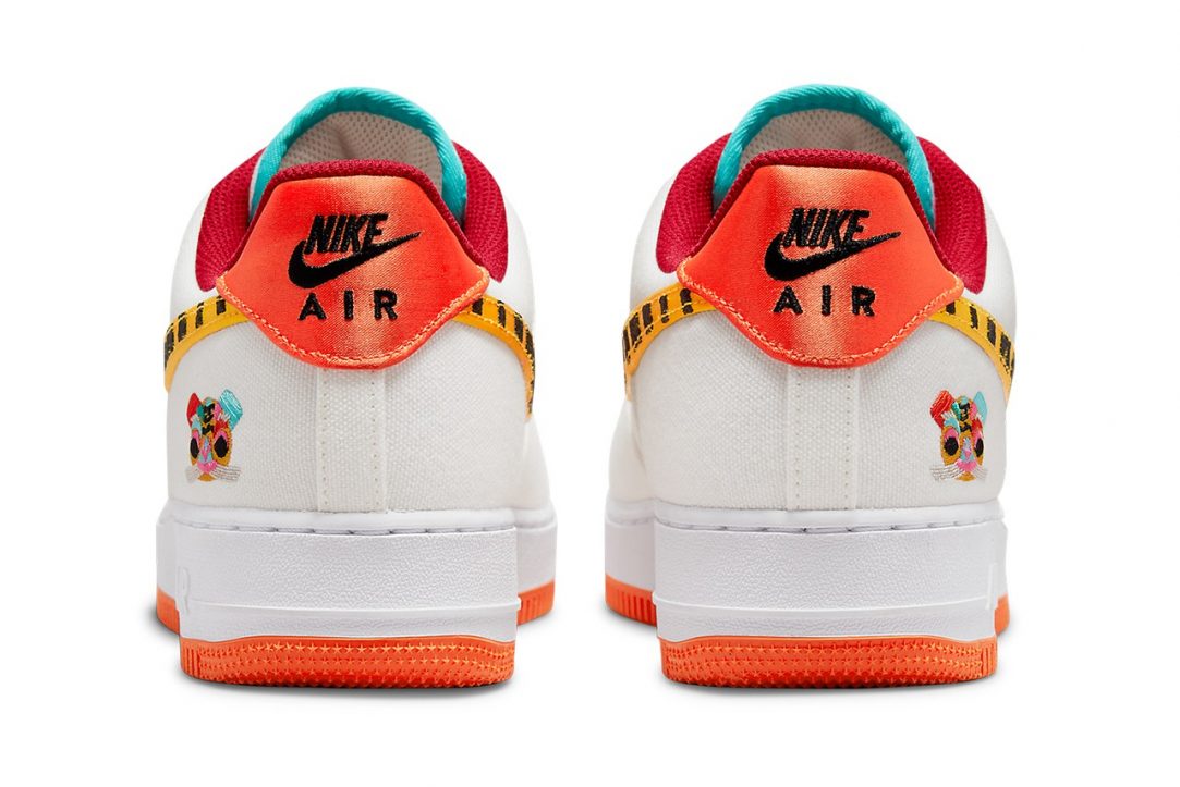 It all starts with a handful of striking details that are both vivid and relevant to Chinese culture. If you remember the Travis Scott Nike Air Force 1 collaboration, the uppers of this rendition come crafted in a similar white canvas material. We also receive golden yellow and black tiger-striped Swooshes. Rather than feature the traditional Nike Air branding on the tongues, you’ll find a unique “T” logo. Furthermore, the lateral heels are embroidered with a detailed image of a tiger. The interior liners feature with a cherry red hue while bright orange finishes sit neatly on the heels and treading.