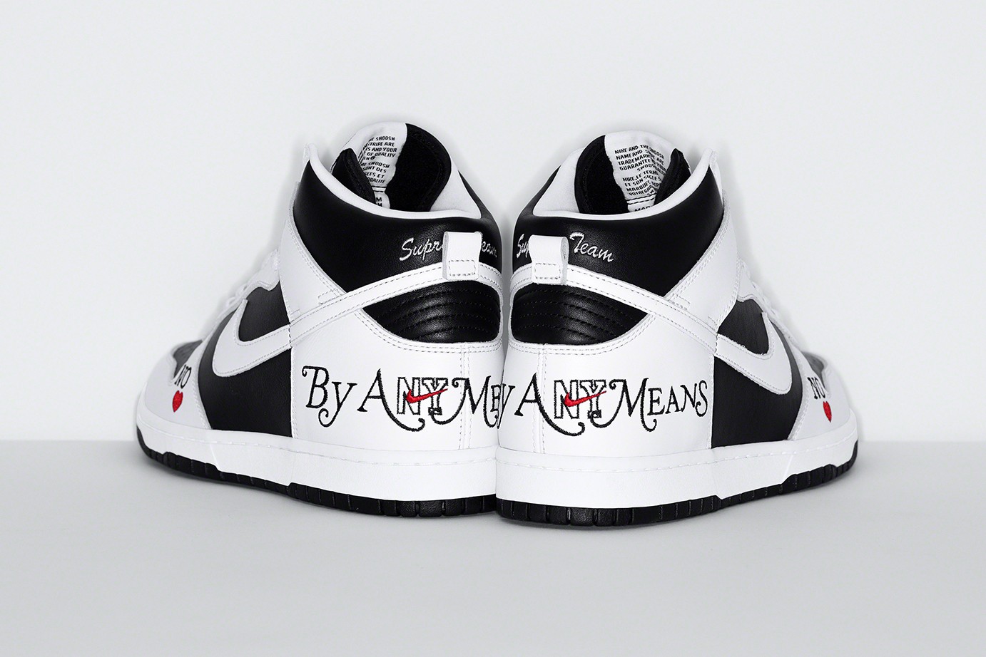 The Supreme x Nike SB Dunk High “By Any Means” arrives via Supreme’s website on March 3rd at 11 am EST in the United States. With a global release, the sneakers will drop in Japan on March 5th, 11 am JST.