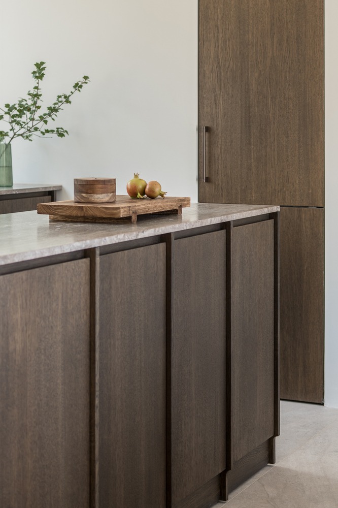 THE INTERIOR DESIGN – INTEGRATING INTO THE ENVIRONMENT The interior design of Monolithoi project aims to follow the architectural line of the two buildings, inspired by the simple tradition, the imposing landscape of Mani, as well as the materials found on this land. The purpose was to create, inside the stone volumes, spaces that give a warm character with a positive sense of hospitality, which always reminds you that you are “there”, in this place. To feel part of a different Doric life. Most of the furniture was designed exclusively by Interior Design Laboratorium, emphasizing the sense of uniqueness and a timeless design line that aims to bring the landscape into dialogue with the design. The forms were kept simple and all the custom designed furniture bear references to a simplified classicism. The materials emphasized the use of oak wood in two shades, which was combined with stones in close colors. The fabrics and carpets used follow natural, earthy, tones soothing the wild textures of Mani’s stone and wood, balancing the interiors with the unique surrounding landscape.