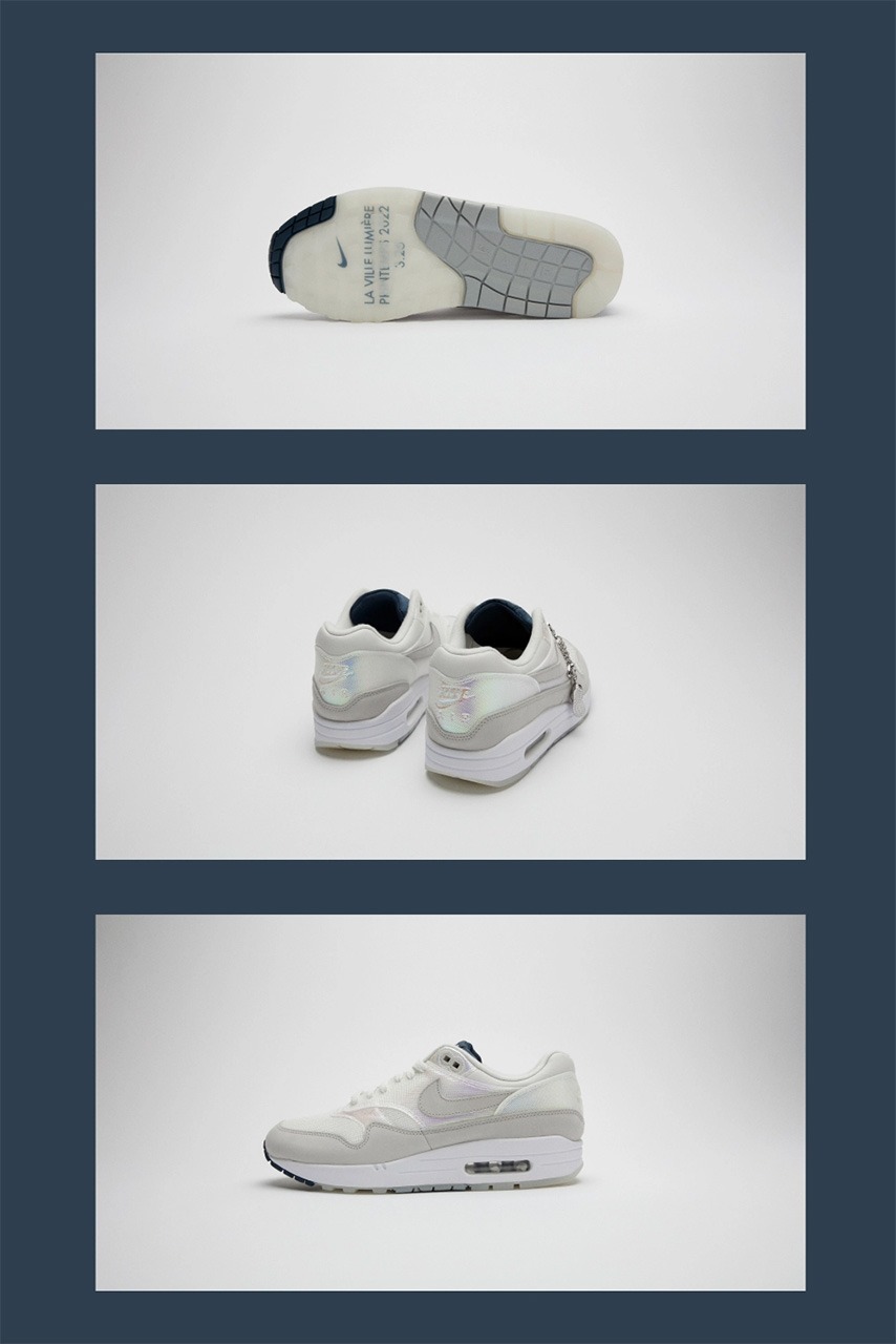 Lastly, the “La Ville-Lumiere” – or “City of Lights.” This ladies-exclusive colorway is styled in a simplistic white and navy fashion. Additionally, the mid-foot overlays shine a subtle iridescence to bolster the look. This iteration will release exclusively in Europe. All three designs utilize white or slightly off-white midsoles with Nike’s pressurized Air technology and rubber outsoles.