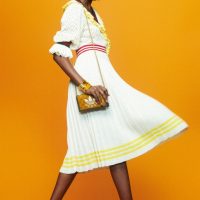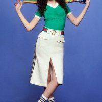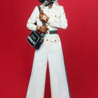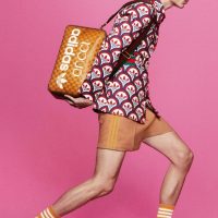 Alessandro Michele serves as the designer for both the collection and the overall campaign. Michele drew from archival catalogs as models pose dramatically against pops of color akin to an ’80s infomercial. It’s the perfect vibe considering many of the pieces feature materials that harken back to that energetic era – velvet, suede, snakeskin, leathers, bold prints, and jazzy fonts. Further, the collection features co-branded micro bags, monogrammed pleated skirts, essential T-shirts, terry cotton pool slides, a selection of jewelry, and much more.