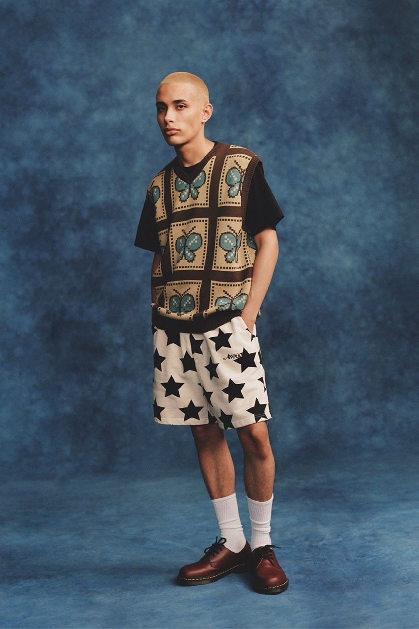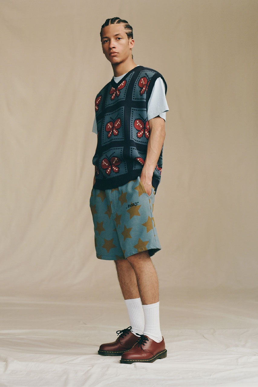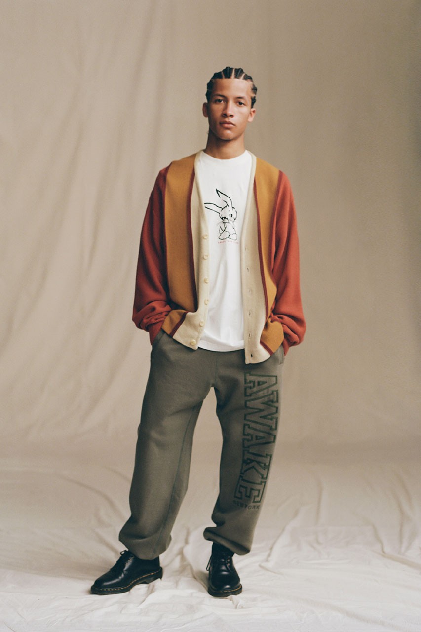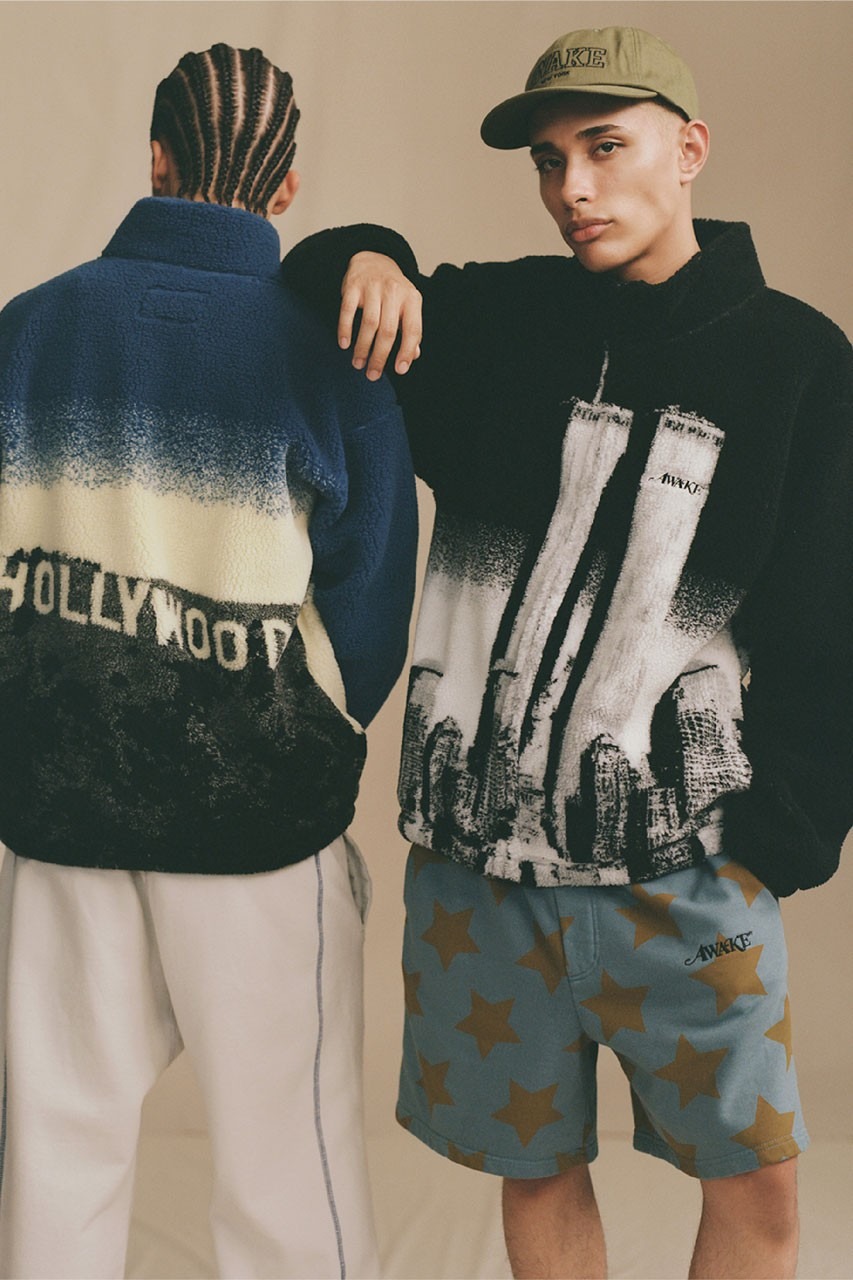 Much like previous capsules, Awake NY gives us outerwear, sweatsuits, cargo pants, cardigans, knitwear and more. Jackets within the collection include varsity-style jackets, star-printed anoraks and fleece zip-up coats with with world trade graphics. With signature Awake NY touches sure to capture attention, such as the cardigans and sweater vests which feature striped and butterfly patterns. These staple pieces feature inviting colors such as goldenrod, coral, lavender, fuschia, olive green and more.