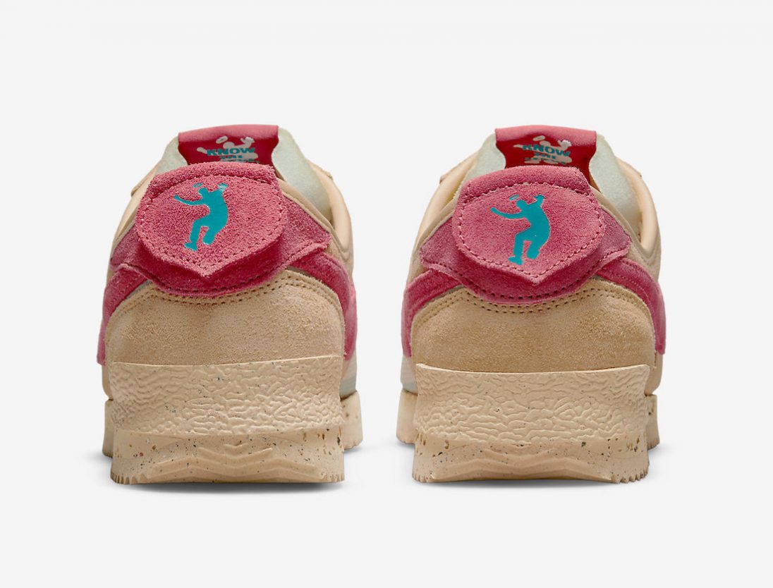 This colorway of the Union x Nike Cortez offers a similar aesthetic to the Union x Air Jordan 4 Guava Ice. It begins with a tan hue covering an upper made from textile canvas and suede construction. Vibrant pink detailing covers the lower eyestay, Swooshes, tongue tags, and heels. Union’s UN/LA tags appear on the lateral forefoot. Additionally, Union’s signature Frontman logo graces the heel flaps covering traditional Nike branding in white. The sneakers also feature co-branded cork insoles, two-toned laces, and dual branding on the tongue. This all rests atop Crater Foam soles to complete the design.