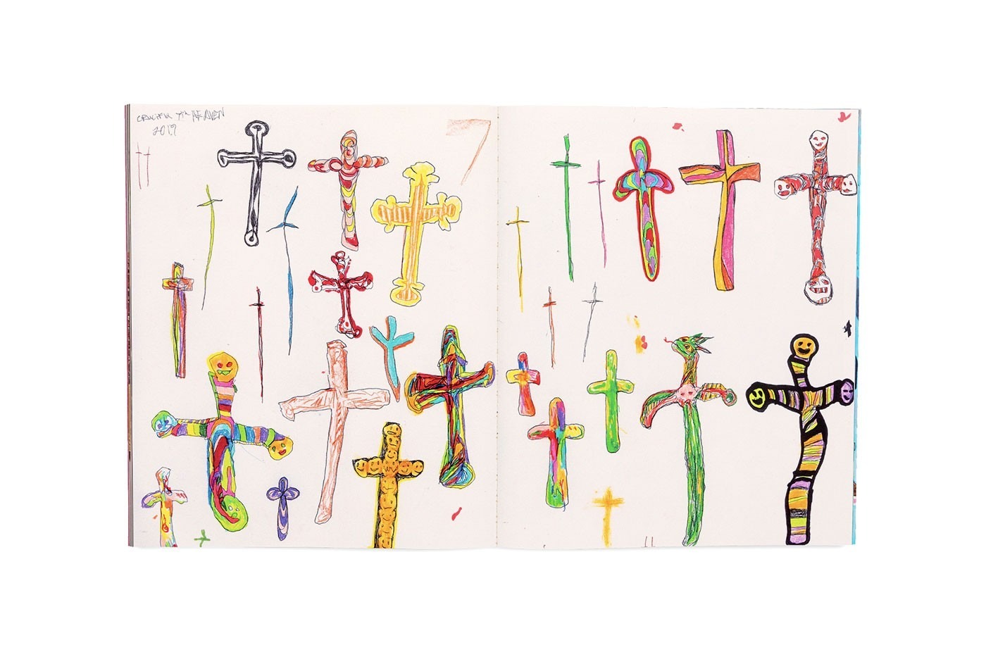 Photographer Kevin Moon shot both the Chief Keef cover and the Yung Kayo feature for SevenSevenSeven‘s first issue. Additional contributors for the issue include digital artist HJR, New York artist Tony Tafuro, French soft sculptor Anne-Valerie Dupond, surrealist Chicago painter Mikey Coleman, and Sp5der Worldwide. Among the more eye-catching contributions is a ‘BEAR WITNESS’ drawing made by rapper Tay-K from jail in San Antonio, Texas. Upon purchase, the magazine comes with an exclusive logo sticker pack designed in collaboration with VERDY, who also designed the fonts used in the issue.