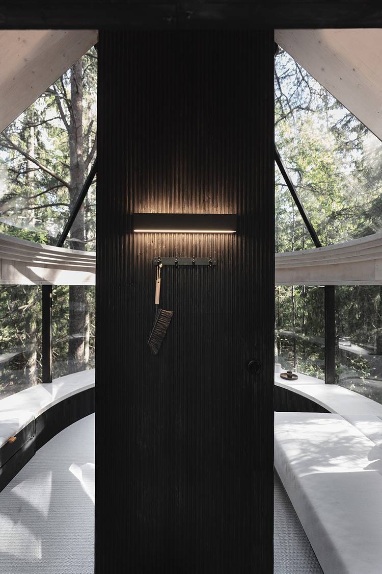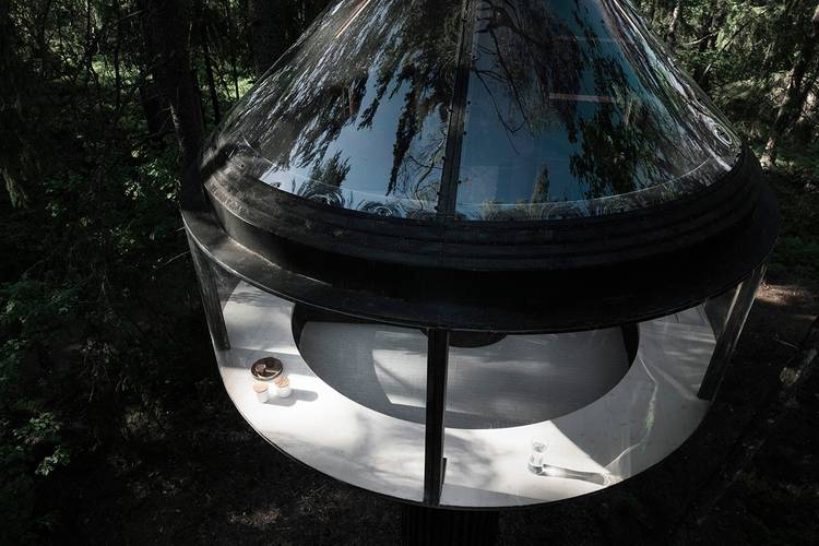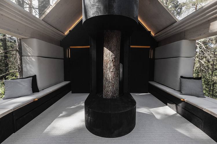 With a name deriving from the Swedish word for a hut or den, KOJA is exactly that. The U-shaped room serves as a lounge/sleeping area with a tree rising through the center. However, with the only other amenity being a nearby standalone bathroom, KOJA is far from a permanent abode.