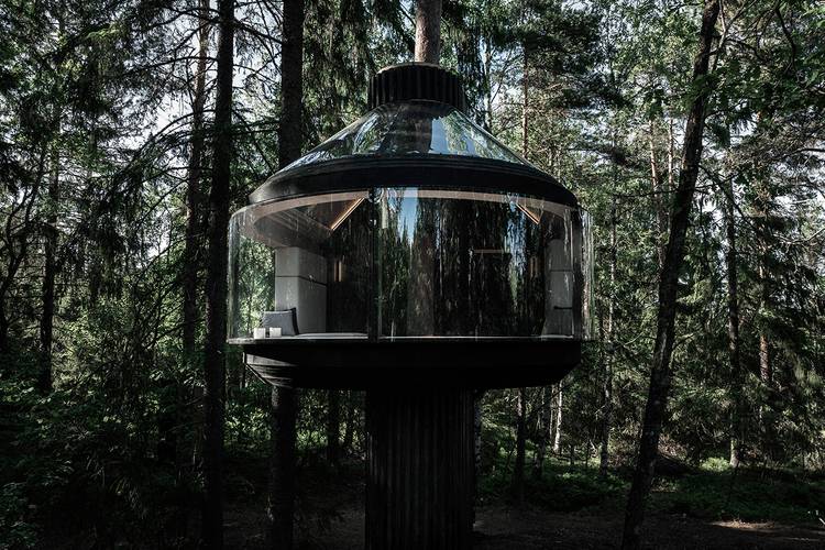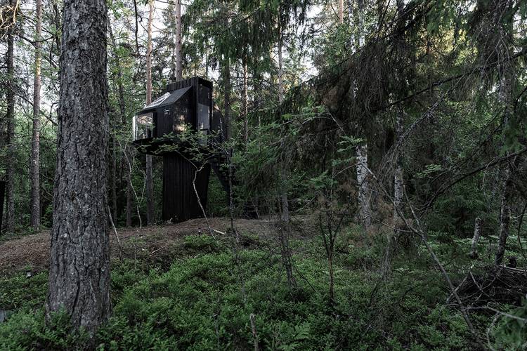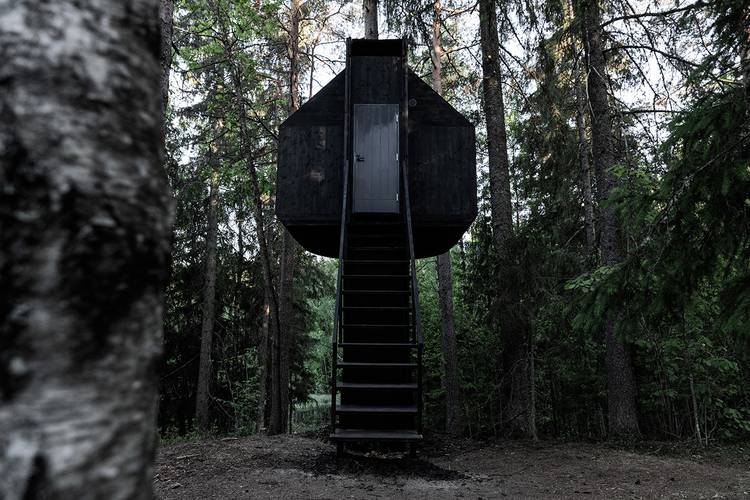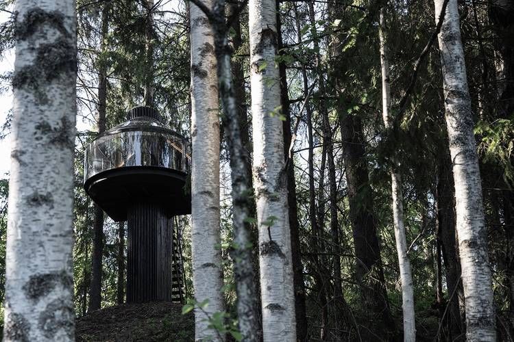 The KOJA Treehouse is on display in the village of Fiskars in southwest Finland as part of the “House by an Architect” exhibition for the Fiskars Village Art & Design Biennale.