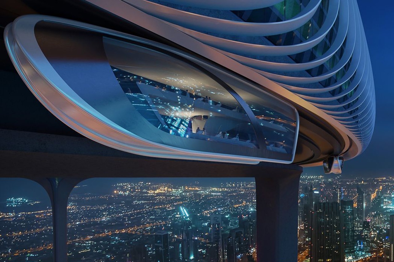 Dubai-based architectural firm Znera Space unveiled a stunning concept design for a giant ring-like structure titled “Downtown Circle”. Standing 550 meters tall, the ring encircles the Burj Khalifa and seemingly hovers over Downtown Dubai.
