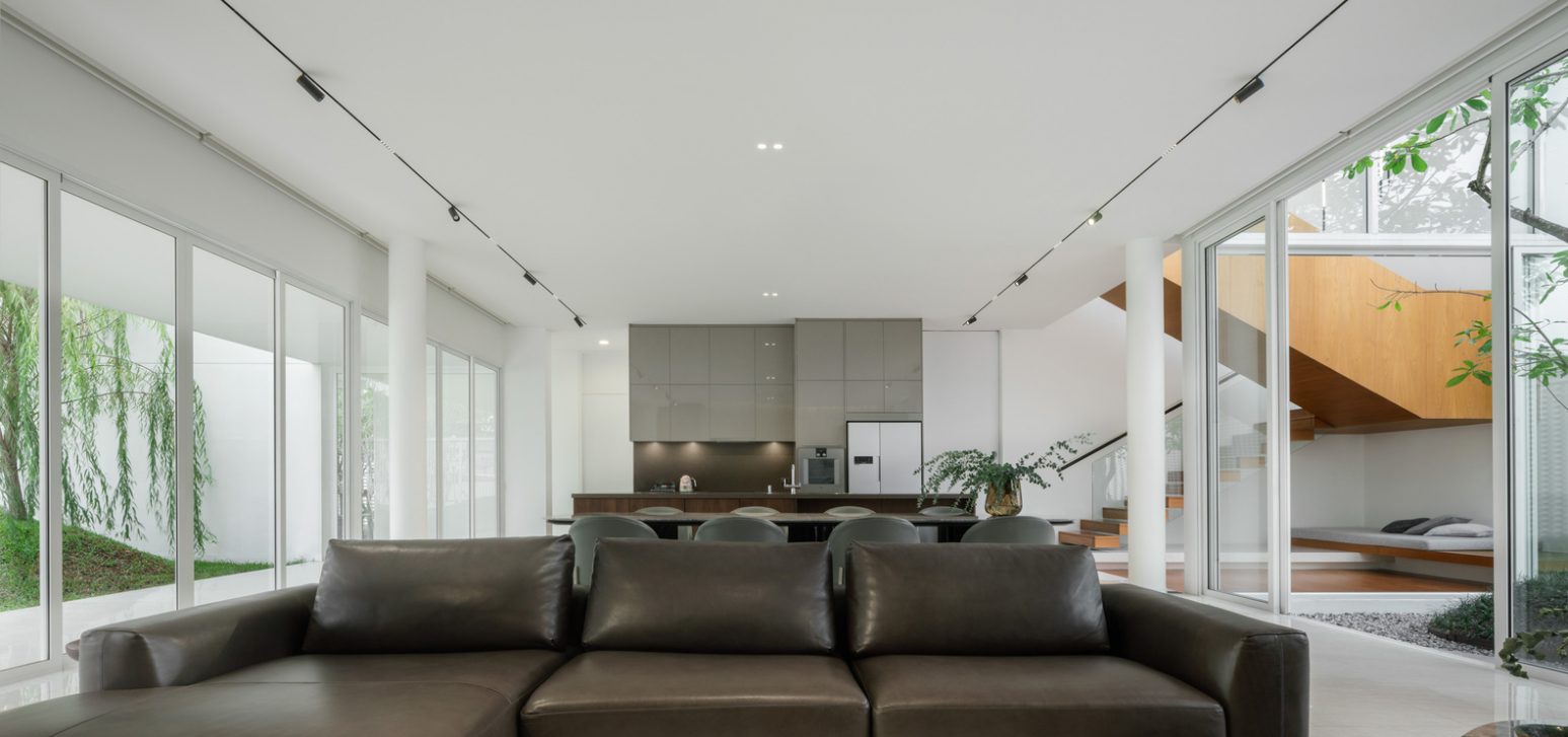 From the road, and neighboring windows, the house appears segregated; green pockets fragmented into levels of privacy, admitting views and access according to their relationships with the client. However, when viewed from inside, the family is afforded continuous, uninterrupted views, where the greenery lines up into fore, mid, and background. The house is designed as a part of the neighborhood, interacting with what surrounds it. The ambition to provide an alternative to closed-off gated developments has started bearing fruit. The layers of screens and façade of Veil house exist not to completely cut the inhabitants off from their surroundings, but in fact, the permeability of these boundaries allows dialogues to take place between what is private and public whilst maintaining absolute privacy where required.