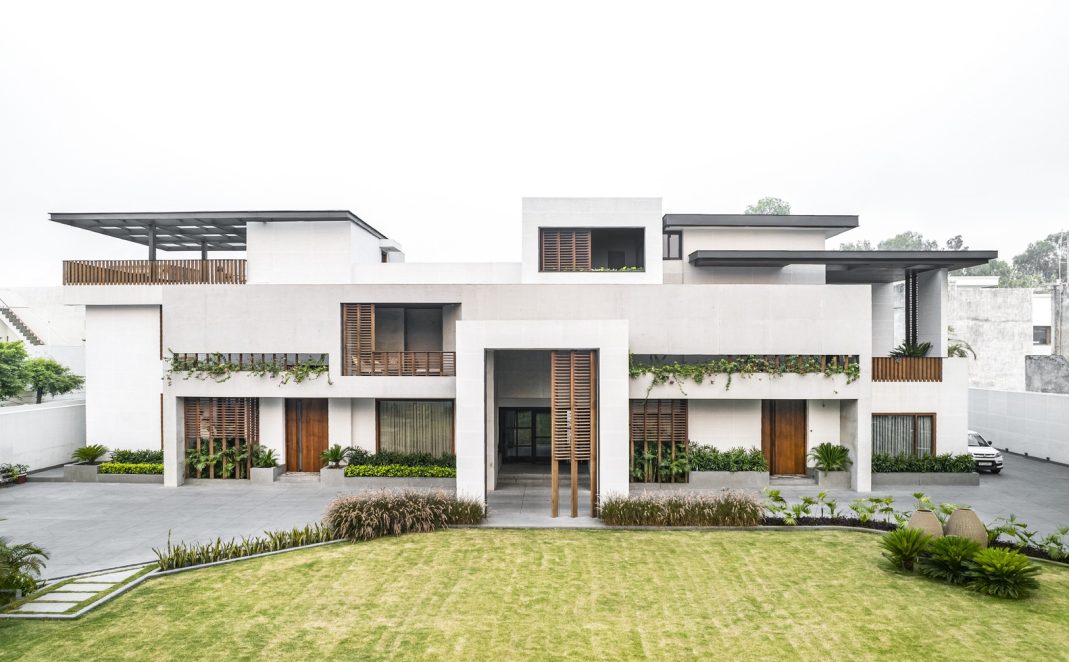 Located in the bustling town of Muzaffarnagar, India, The Hem House by Portal 92 is a sprawling residential refurbishment project. Formerly, the establishment presented itself as two asymmetrical structures. Portal 92 hems the two houses together by finding a vague sense of symmetry in an asymmetric system to create the illusion of oneness.