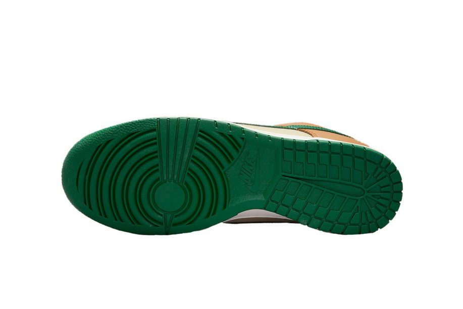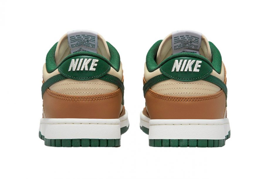 This outdoor-inspired Dunk Low draws from a palette of earth tones all around. Pale tan underlays grace the toe boxes, quarters, and collars while muted brown leather covers the overlays. “Forest Green” accents draw your eye with a laidback pop of color on the Swoosh, heel tab, and interiors. Additionally, beige nylon tongues feature white tags that boast Nike branding in green. Creamy white laces match the midsoles down below, while “Forest Green” hits the outsole to complete the look.