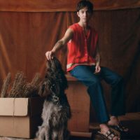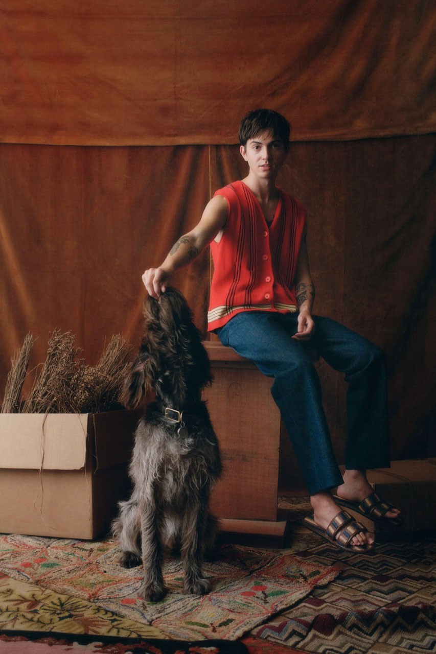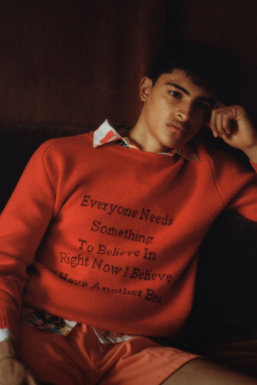 Additionally, a long sleeve polo shirt reads “Hester” across the chest, presumably as a tribute to the neighborhood’s street of the same name. There’s also a quirky red sweater that reads “EVERYONE NEEDS SOMETHING TO BELIEVE IN RIGHT NOW I BELIEVE I’LL HAVE ANOTHER BEER”. Elsewhere, a variety of horse-themed garments. This includes a short-sleeve button-down shirt with red piping and an intarsia knit sweater and pants set in royal blue with yellow stripes. With this collection, Bode indulges in all the things that are close and personal to her before returning to Paris for her first runway show since 2020.