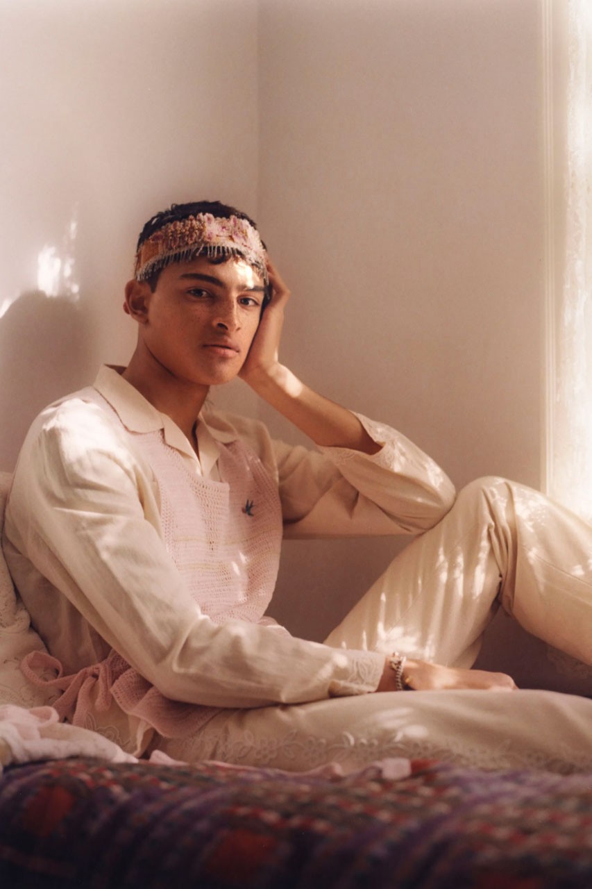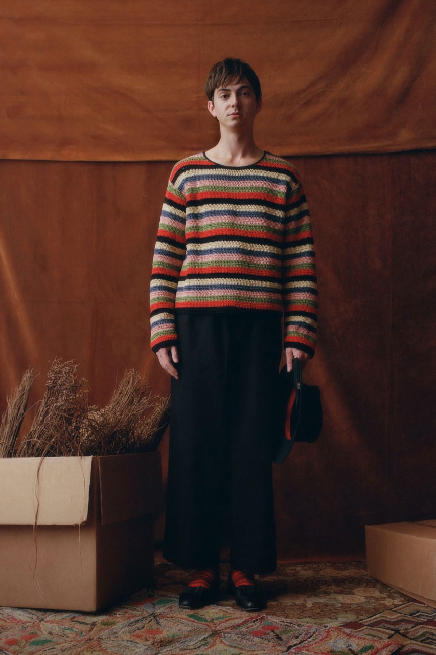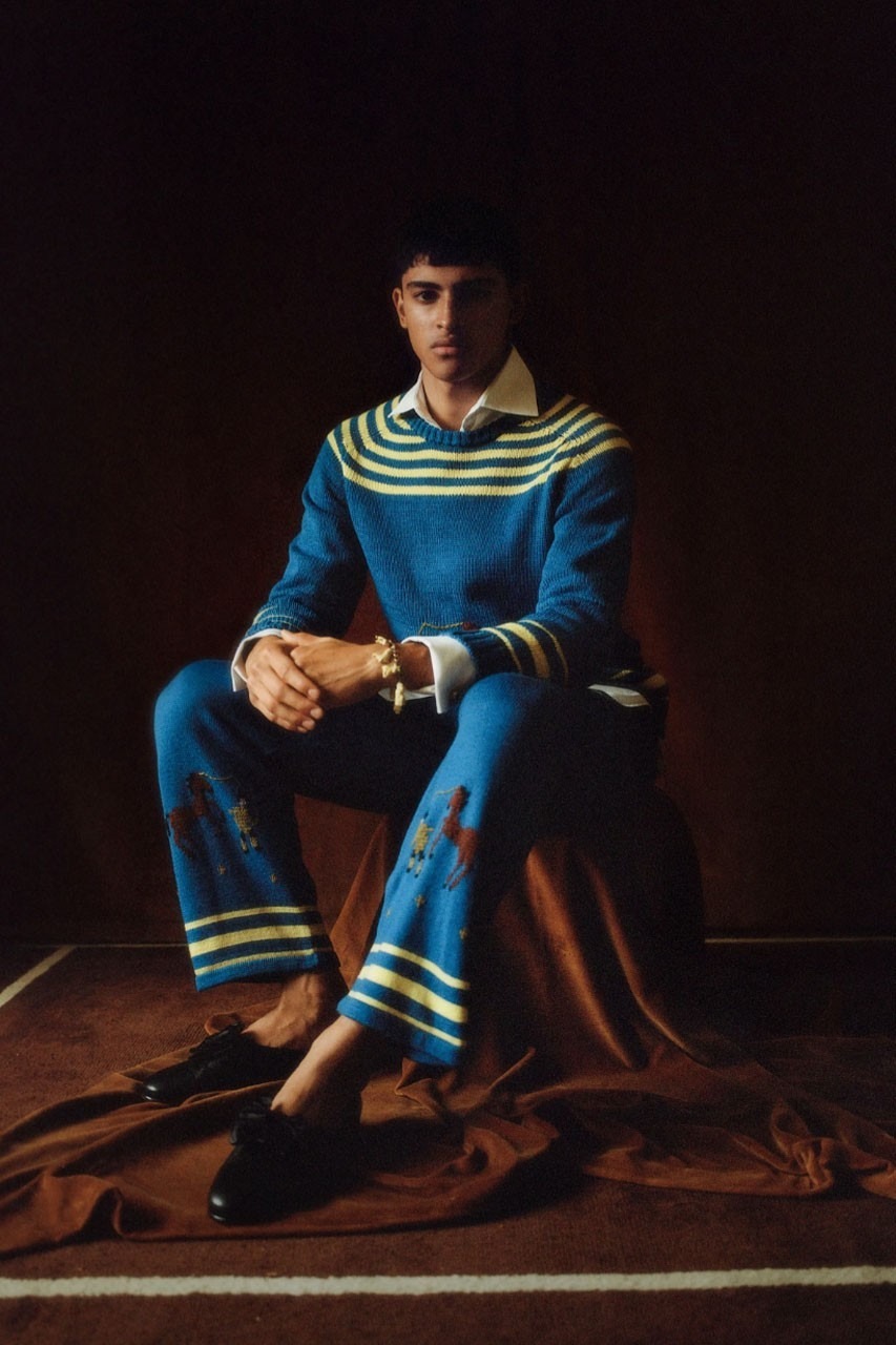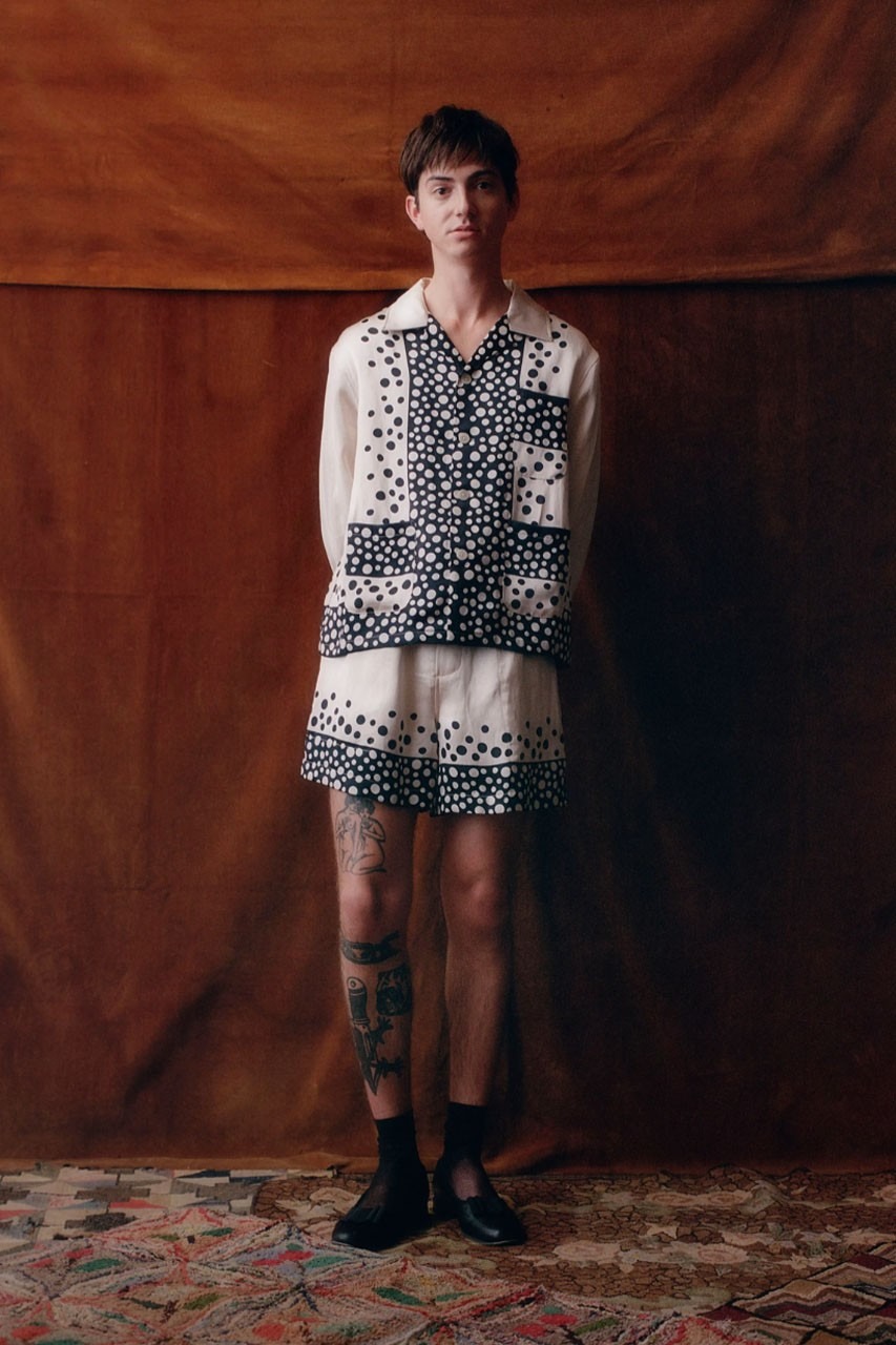 Knitwear leads the way in the Spring 2023 collection that is distinctly Bode with its blend of age-old textiles. Intarsia cardigans and crochet polos take inspiration from the brand’s archives, reenvisioned with more breathable fabrics so they won’t itch. There’s also an emphasis on pajamas, though they’re not solely meant to be worn while sleeping. One set arrives in cream with white piping while another appears in lavender and white-on-black. Bode styles pieces with collared shirts, ties, printed button-downs, and crochet vests as she proves there’s versatility in sleepwear.