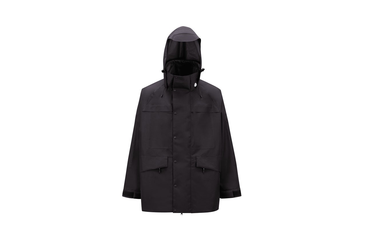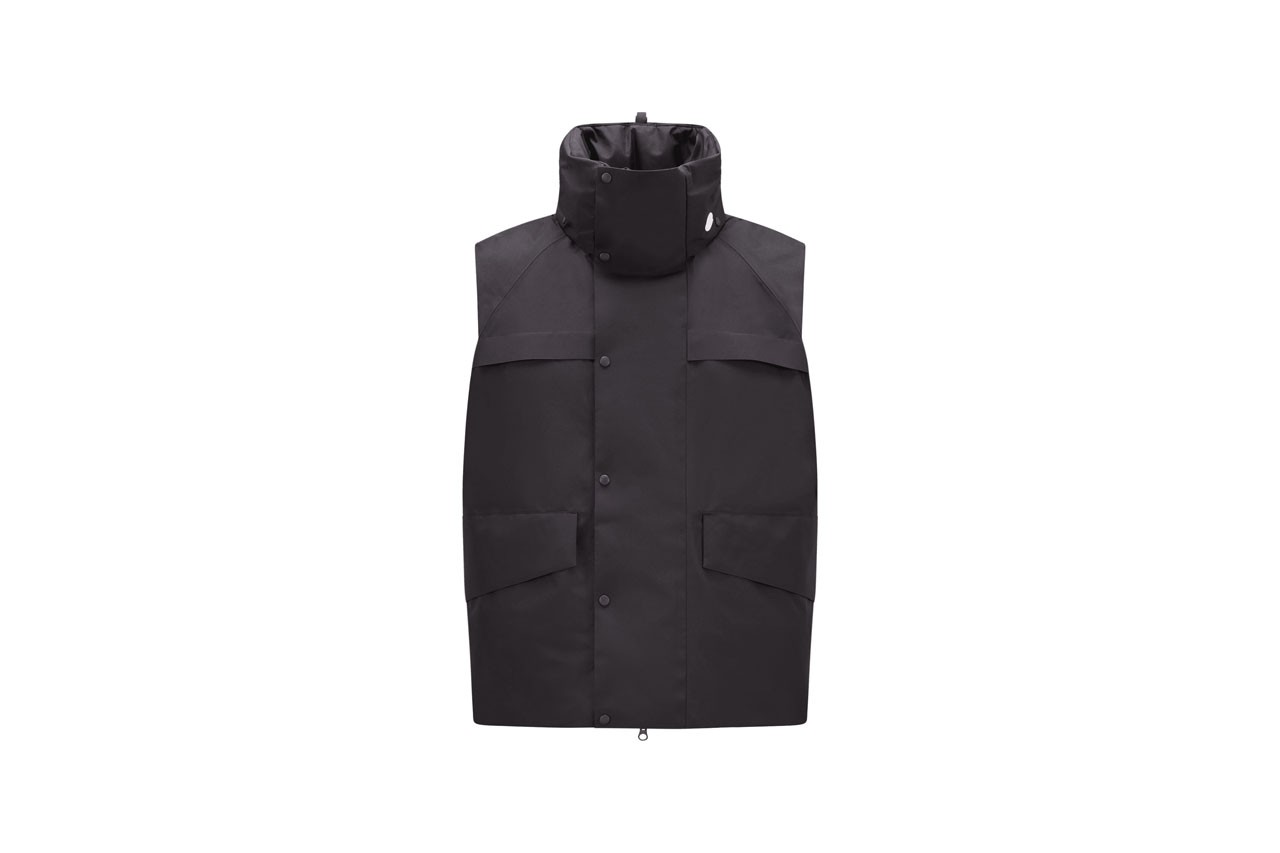 The pair concentrates on utility under 4 MONCLER HYKE, with leading technical fabrics and finishes such as GORE-TEX INFINIUMTM, micro ripstop nylon outerwear, thermo-heated quilting, double closures, and YKK AQUASEAL® zippers. The collection contrasts elegant shell coats and vests in both long and cropped variants with dramatic quilted puffers in a black and neutral palette. Organic outdoor prints in sand, stone, and cloud break away from the collaborators’ previously rigorous devotion to block colors, while straight lines, side slits, and puller tapes highlight HYKE’s influence on the collection.