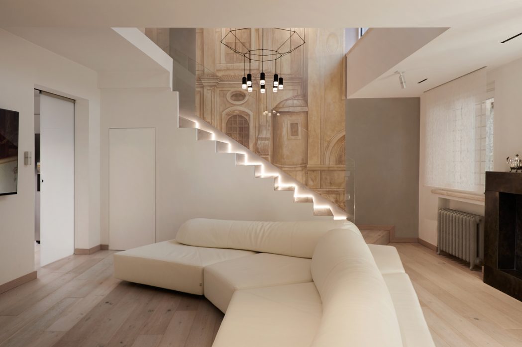 This prestigious residence located near the Piazza Navona in Rome is nestled within a unique urban and artistic architectural mosaic. The renovation takes into consideration this unique nuance and emphasizes it through the contrast with new architectural choices. The double height living room has multiple views towards terraces and it is...